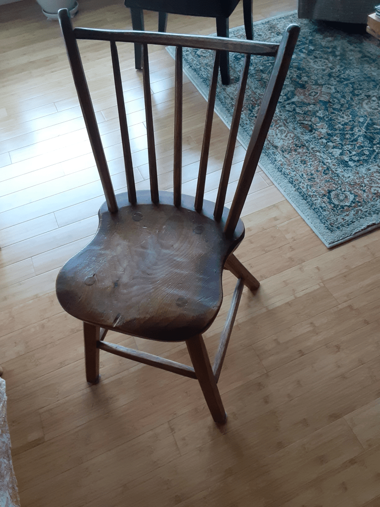 My son Zac, visiting from Minnesota with his partner Vicky, noticed yesterday that a peg on one of the dining room chair banisters was a bit loose. “I think this chair spindle may be breaking away, see?” he showed me with a worried look.