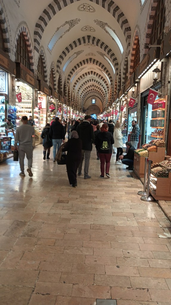We walked into the explosively wonderful smells of the Spice Bazaar. Together we walked past – but not into – the Hagia Sophia, Blue Mosque, Basilica Cistern, and Topkapi Palace. We did dive into the enormous and lively Grand Bazaar. Mohammed was in search of goodies for his children. In particular he sought a present for his son who would be deeply disappointed if he didn’t get something, since the girls had already been shopped for.